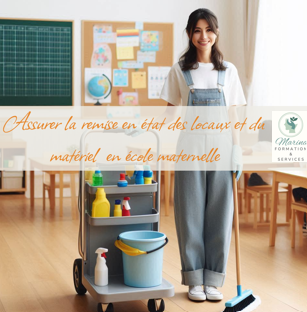 - Assurer des activités de remise en état des matériels et des locaux en école maternelle
