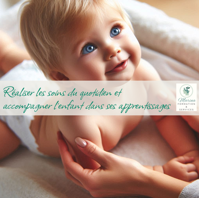 - Réaliser des soins du quotidien et accompagner l’enfant dans ses apprentissages